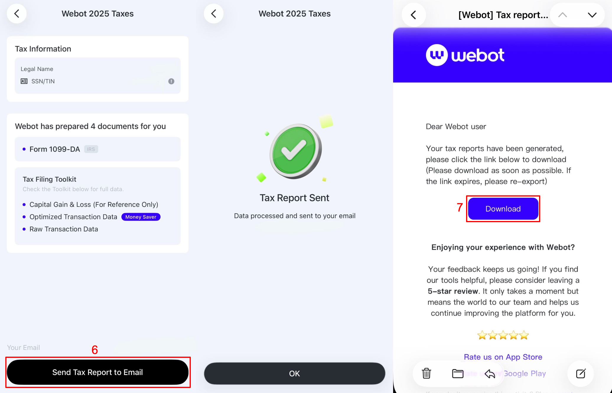 You can follow these steps to download your tax report on Webot.
